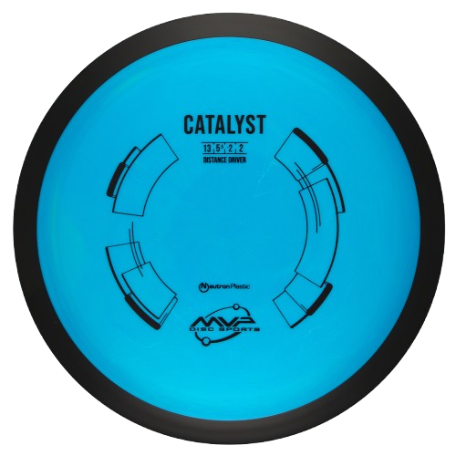 The Catalyst is a perfect starter for big distance. Its stability profile lends itself to being incredibly useful even when underpowered. Catalyst is similar to a longer Wave. High power throwers will be able to control rollers, sky anhyzers, and tight turns, while average to low power players will get easy distance with great glide, and a power responsive amount of turn-to-straight. The Catalyst is molded with the same core and nice even dome as the Octane, yielding extra glide for maximum distance shots.