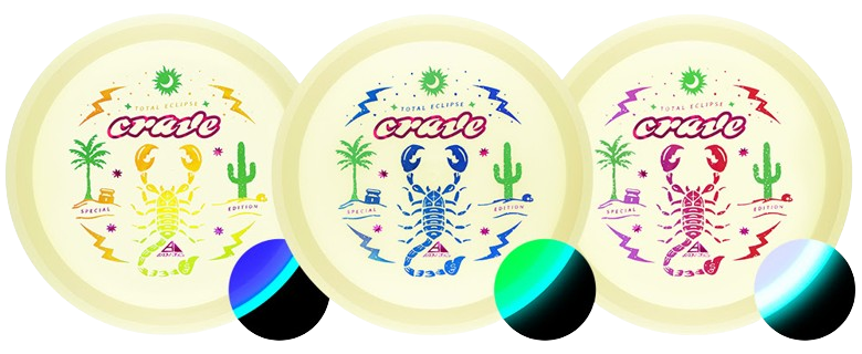 The hunt for your favorite new Crave is over! It may be December, but the oasis vibes carry on thanks to Scott Oswalt delivering a fresh illustration for the Special Edition Total Eclipse Crave. The workhorse fairway driver in the Axiom lineup, the Crave has proven time and again why it’s become a mainstay in bags around the world. Available in a variety of core and rim glow combinations from green, blue, teal, purple, and white, find your perfect combination!