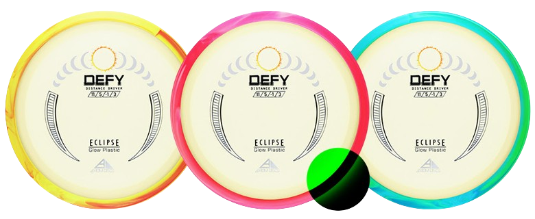 The Axiom Defy is now available in our industry-leading Eclipse plastic all year! Known for reliable distance, whether you’re throwing into the wind or with power, the Defy is perfect for long, straight, high-power shots with a forward-pushing fade and reliable lower-powered overstability. Defy headwinds and the darkness with the Eclipse Defy!