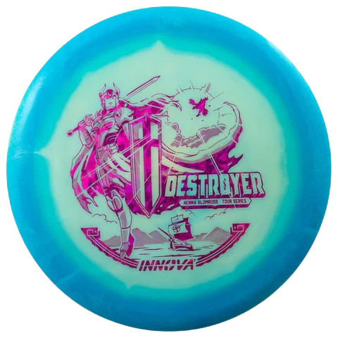 The Destroyer is a very fast stable long distance driver. Great disc for sidearm throwers and those with lots of power. Can handle headwinds and throws with off axis torque. Not suggested for beginning players.