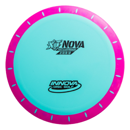 The Nova is a unique putter designed with overmold technology. The flight plate is made from a firm Pro material that’s fused to a grippy putter Pro plastic rim. The soft rim absorbs impact and sticks the landing while the firm flight plate allows for powerful throws making the Nova an excellent putter and approach disc.