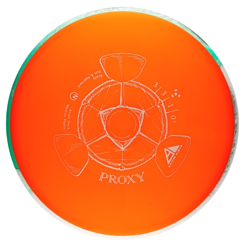 The Proxy shares the Envy mold’s core, lending the same low-profile feel and solid grip, along with a short wing width and wide flight plate diameter for superior glide. The Proxy sets itself apart from the Envy with a remarkably straight-forward-fading finish. A bit of high-speed turn potential allows the Proxy’s lines to be manipulated over a broad range of power and helps less powerful throwers achieve straight putter drives.