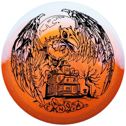 This Roc3 features “Duo”, Innova’s newest molding process. Every disc is a unique blend of white Star and orange Metalflake materials forming one hauntingly beautiful disc. Then, you add the scary-oversized XXL Halloween Roc stamp and now you have a treat for collectors and players.