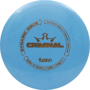 “I love the Dynamic Discs Sheriff! It has tons of glide, but it’s also very easy to throw. It’s one of the farthest flying discs in my bag. It is also great at holding whatever line I put it on! I tend to use it for long S-shots and longer hyzers.”